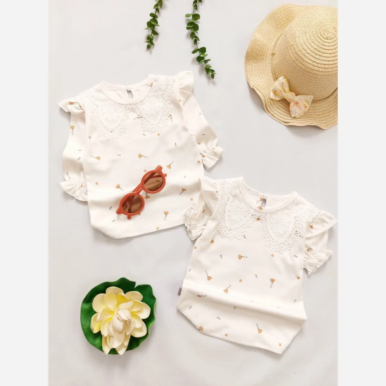 بلوز دخترانه دورس پنبه طرح قلب گلدوزی شده آستین چیندار مناسب 2 تا 8 سال