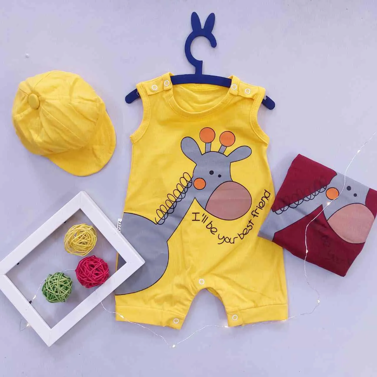 رامپر نوزادی طرح زرافه با کلاه - جنس پنبه صد در صد - مناسب 3 تا 12 ماه