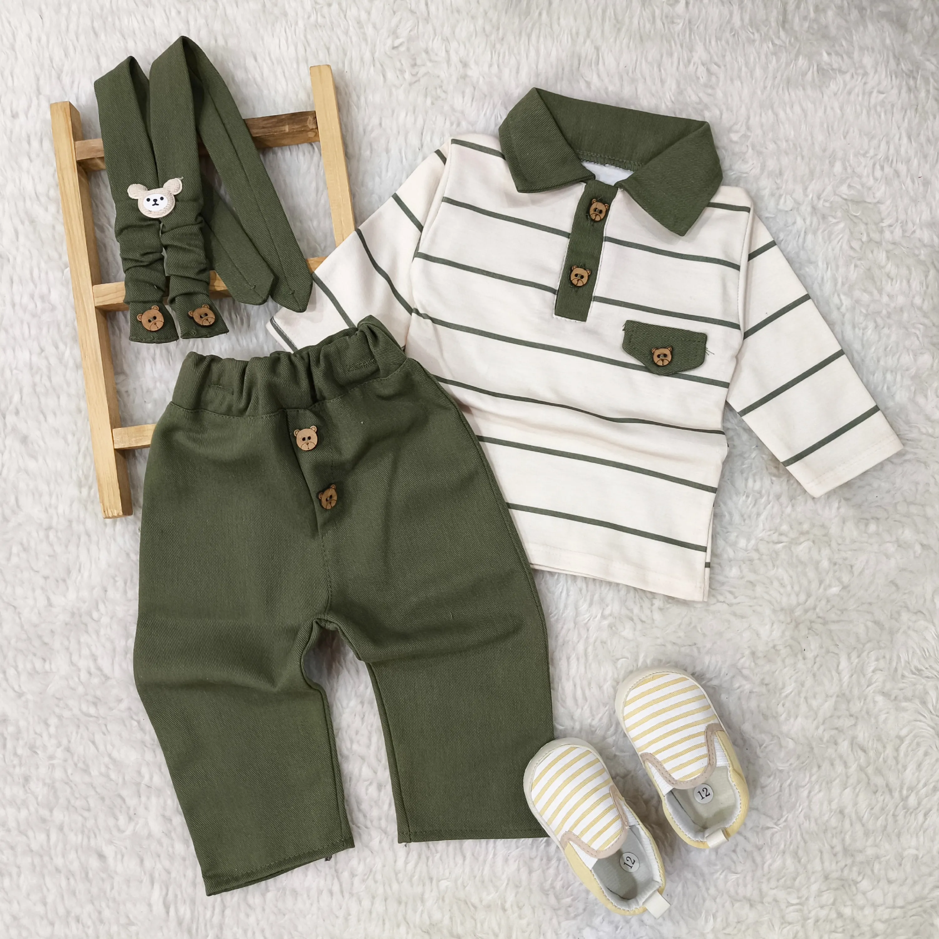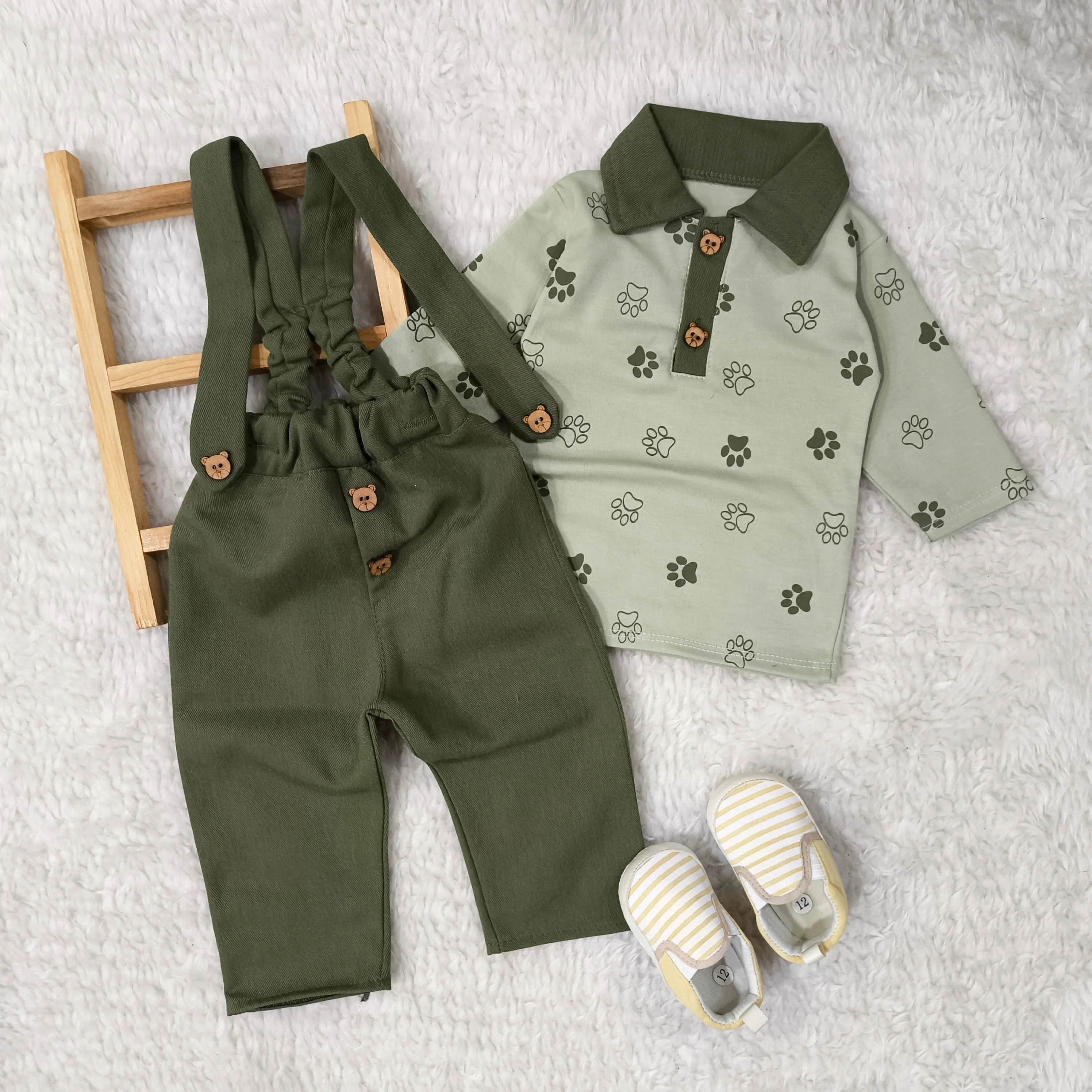 بلوز شلوار مجلسی پسرانه طرح پنجه و خرس | مناسب نوزاد تا 3.5 سال