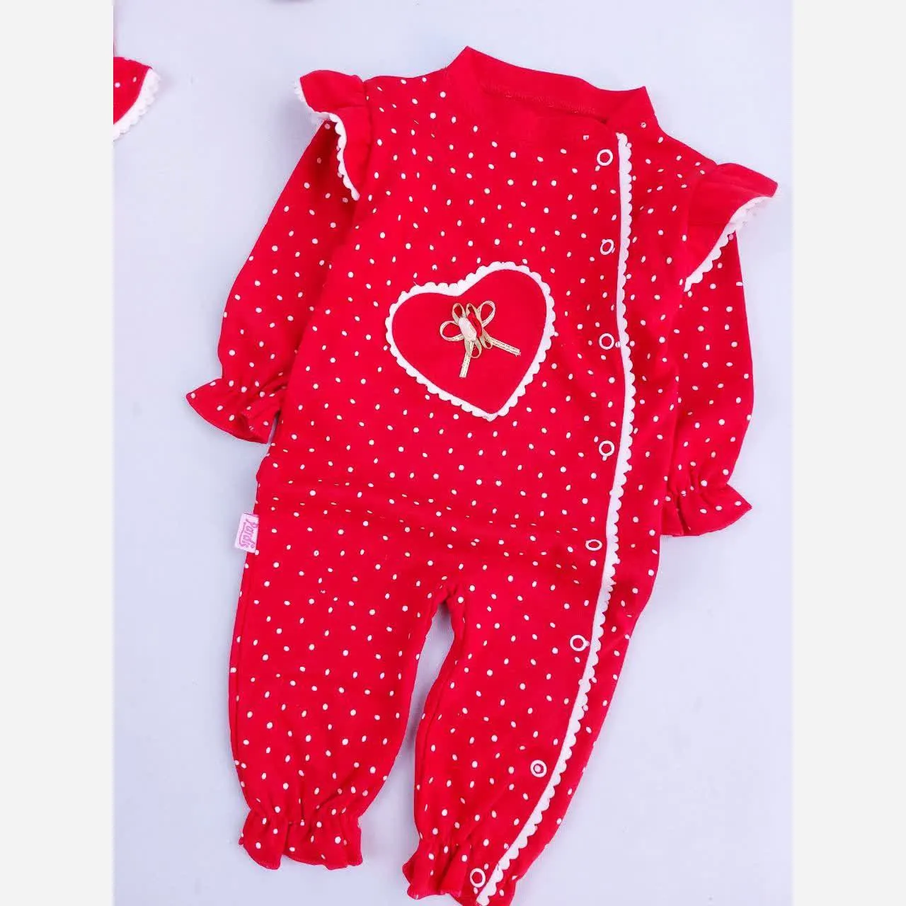 سرهمی نوزادی دخترانه قرمز خالدار طرح قلب | لباس یلدا 3 تا 24 ماه