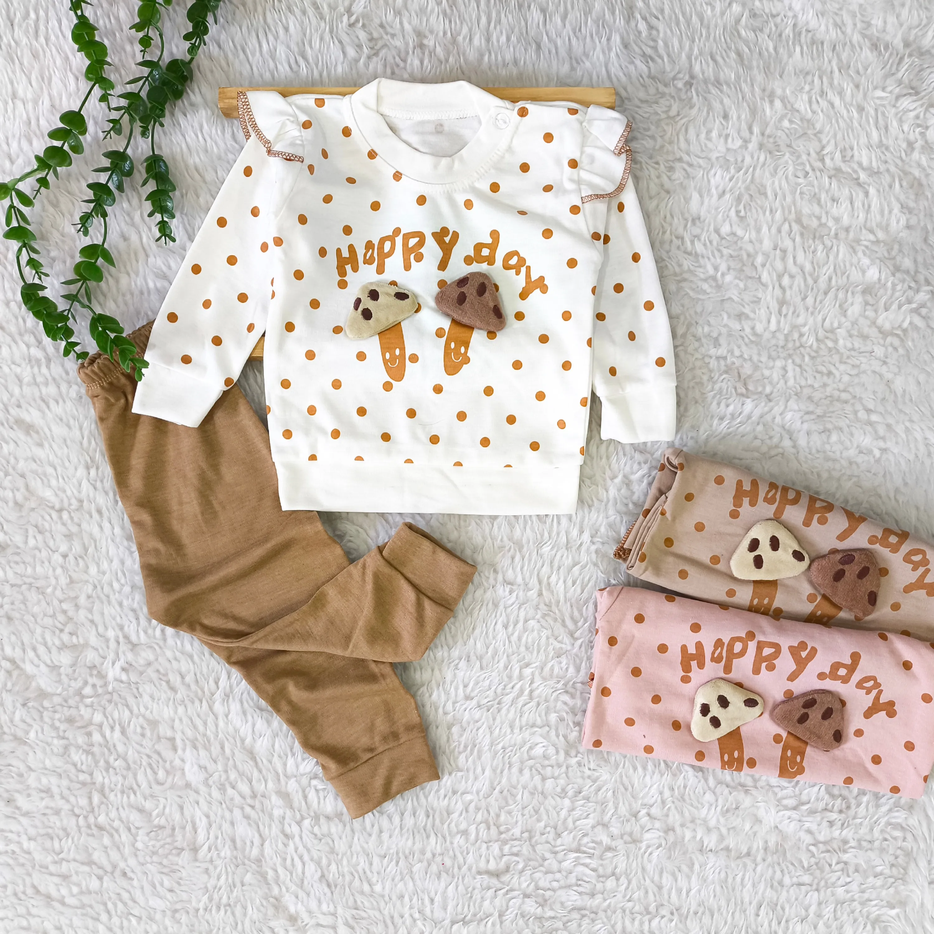 بلوز شلوار دخترانه طرح قارچ پولکی نوزادی و بچگانه