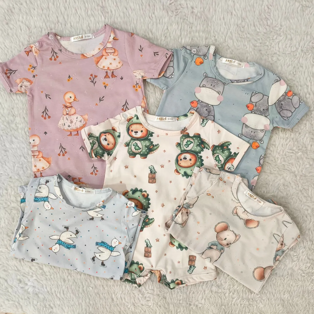 رامپر آستین کوتاه نوزادی سرهمی دخترانه رامپر پسرانه
