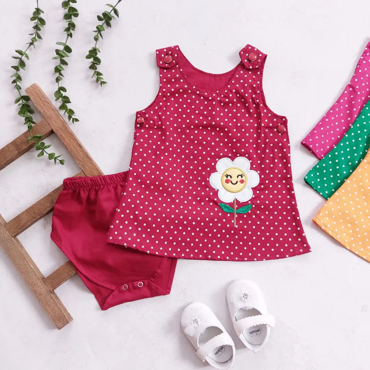 سارافون و شورت نوزادی دخترانه طرح خال خالی جنس کتان نخ درجه یک