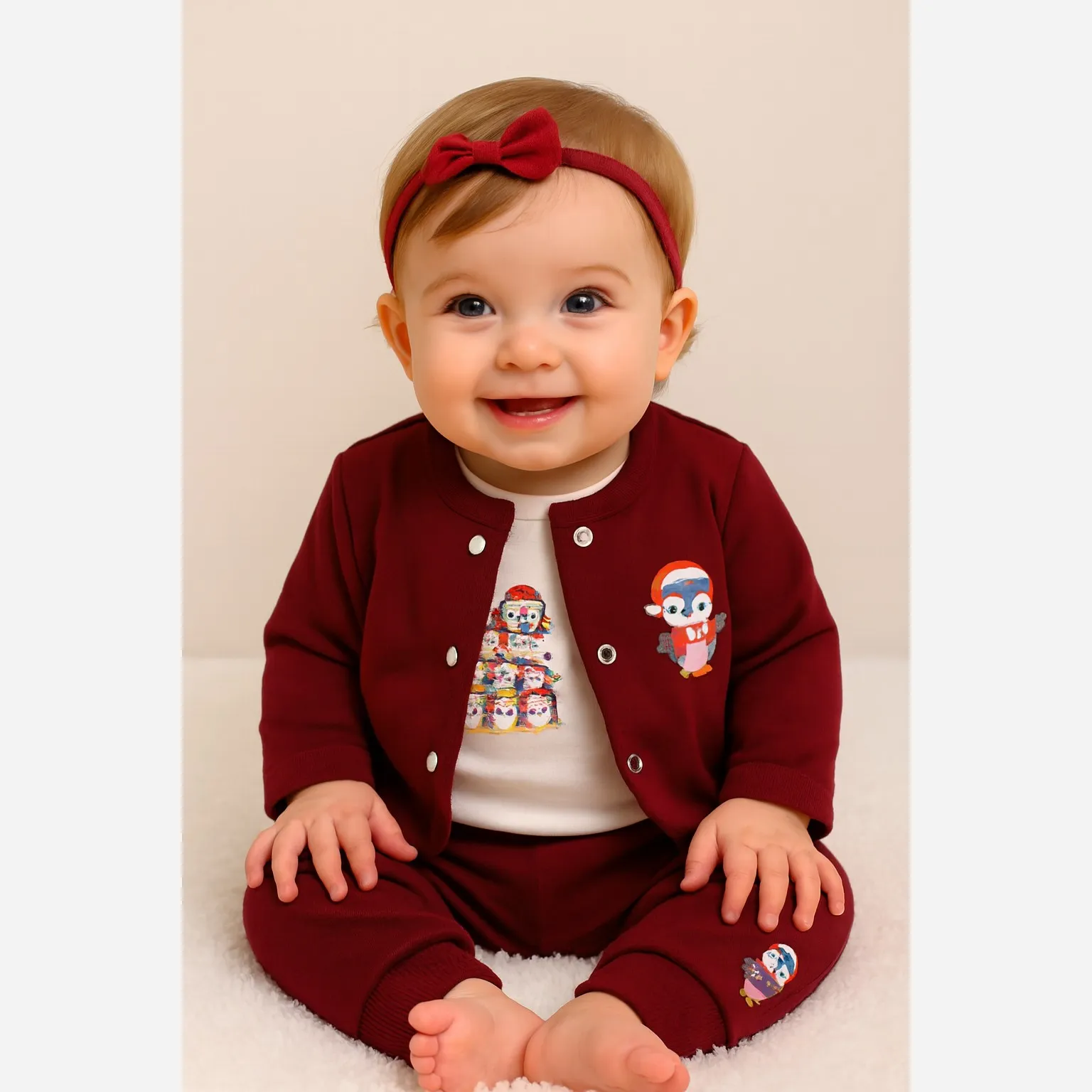 سه تکه بلوز شلوار و بادی نوزادی دخترانه پسرانه ست یلدایی پنگوئن