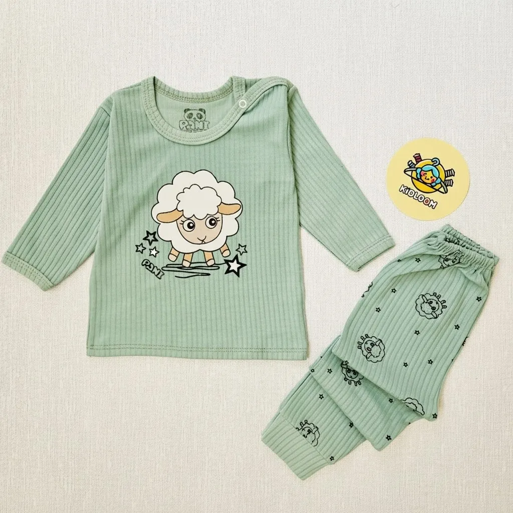 ست لباس راحتی نوزاد طرح گوسفند کبریتی پنبه ای نرم و کشی مناسب 0 تا 24 ماه