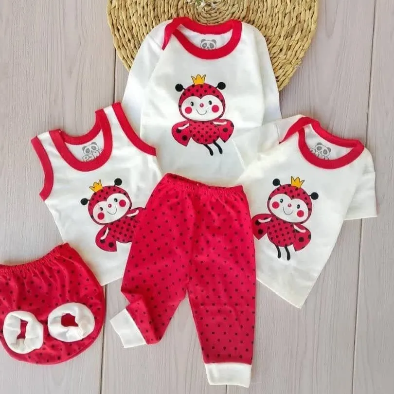 ست پنج تکه نوزادی (سیسمونی) نخ پنبه لطیف بدون حساسیت 0 تا 9 ماه