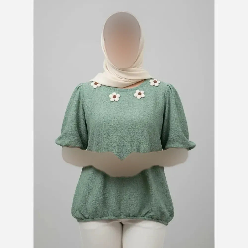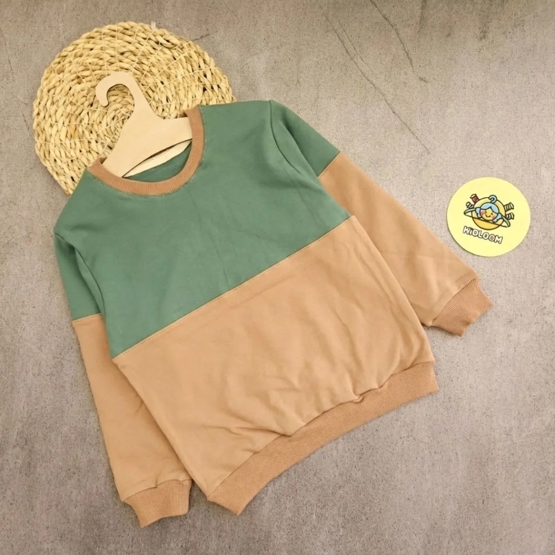 بلوز دورس پنبه لاکرا بچگانه طرح دو رنگ سبز و قهوهای مناسب 1 تا 10 سال