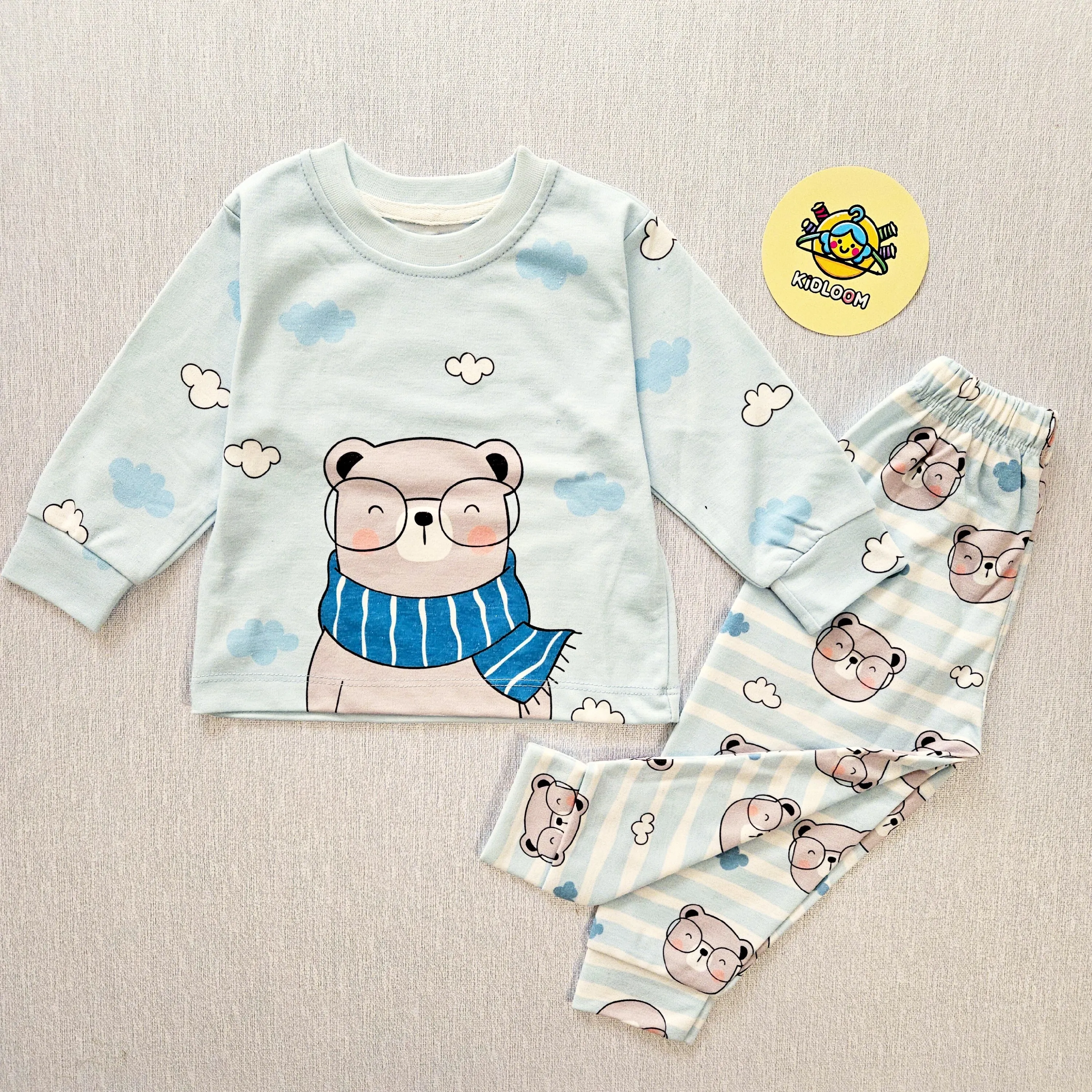 ست بلوز و شلوار راحتی بچگانه طرح خرس عینکی | لباس راحتی کودک پنبه ای