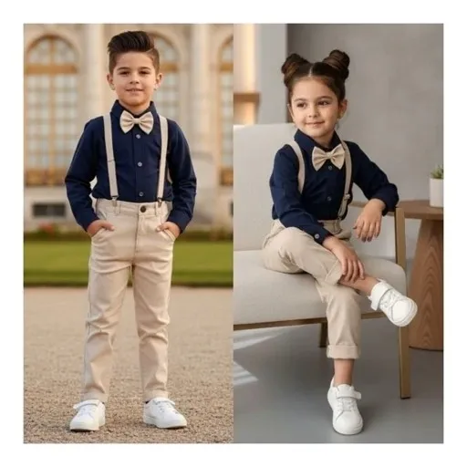 ست مجلسی ساسبند پسرانه 4 تکه عیدانه پیراهن شلوار ساسبند پاپیون 4 تا 12 سال